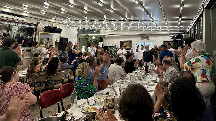 The music was also traditionally Romanian: at the centre of the live band was a cheerful and very virtuoso hand organ, the volume of which almost caused the entire room to explode. Paavo Järvi was so taken with this lively music that he got up from his seat and enthusiastically walked to the front of the band to capture some of these moments with his mobile phone camera. There were also spontaneous dance interludes from our musicians and continuous cheers for the live band. In short, this first evening in Bucharest was a blast.