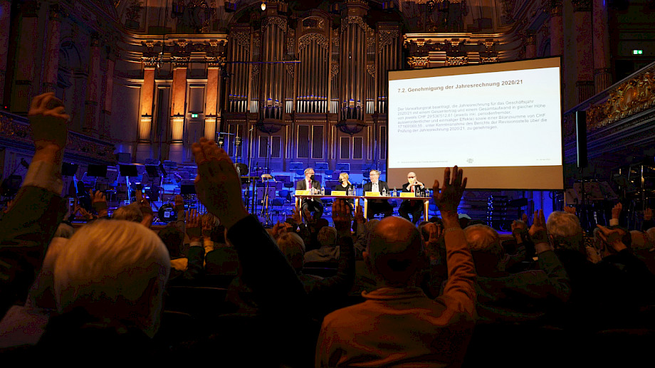 Am 24. Januar 2022 fand am Abend die Ordentliche Generalversammlung der Tonhalle-Gesellschaft Zürich AG statt. Das war in zweifacherweise besonders: unsere noch junge Aktiengesellschaft konnte erstmalig live mit rund 230 Aktionär*innen und dann auch noch in der renovierten Grossen Tonhalle stattfinden.