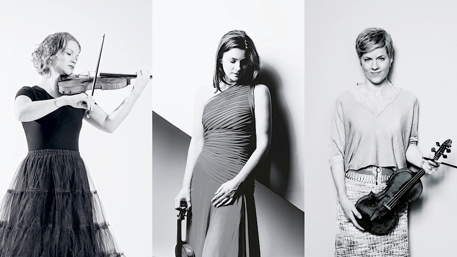 Hilary Hahn, Janine Jansen, Isabelle Faust (Fotos: OJ Slaugter, M. Borggreve, F. Broede)