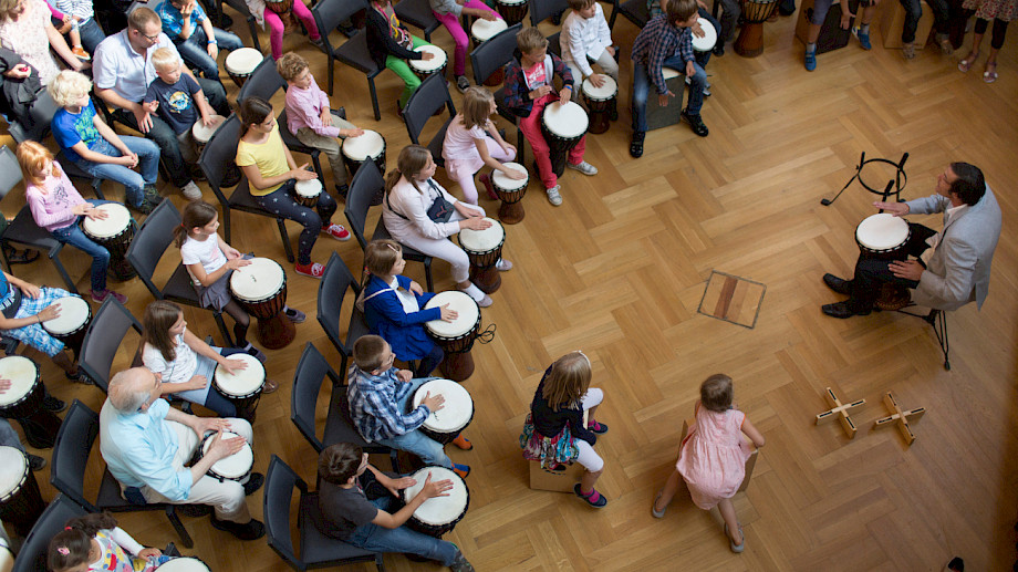 And would you like to set the rhythm yourself? Then just come to our djembe session with workshop leader Sven Quartier at the Kleine Tonhalle from 10.30 am or 1.30 pm. Registration is not necessary, just come along. We look forward to seeing you.
