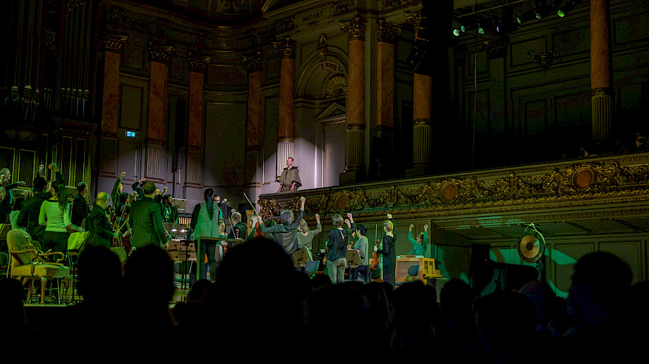 Tonhalle-Orchester Zürich, Christopher Morris Whiting Leitung, Singschule I und II von MKZ Waidberg, Eva Welter Schauspiel, Anna Papst Regie, Linda Rothenbühler Ausstattung, Toek Numan Kompositionen, Arrangements Im Land der Dämmerung