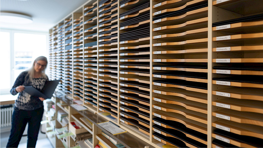Wenn die Noten ins Haus kommen, ist viel bibliothekarische Arbeit schon erledigt. Nun beginnt der Feinschliff.
