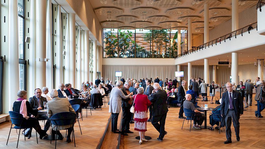 Als sozusagen stillen Protagonisten dieses Abends muss man noch den Saal erwähnen: Vor einem Jahr wurde er nach der Renovation wieder eingeweiht, nun konnten unsere Intendantin Ilona Schmiel und unser Präsident Martin Vollenwyder das Publikum bereits zum zweiten Saisonstart seit der Rückkehr an den See begrüssen. Und auch wenn der Glanz und die Farben inzwischen vertraut sind: Wie sich dieser Saal nach der Sommerpause wieder mit Musik und Applaus füllte – das wurde nach dem Konzert beim Schlummertrunk im Foyer und auf der Terrasse ausgiebig gefeiert.
