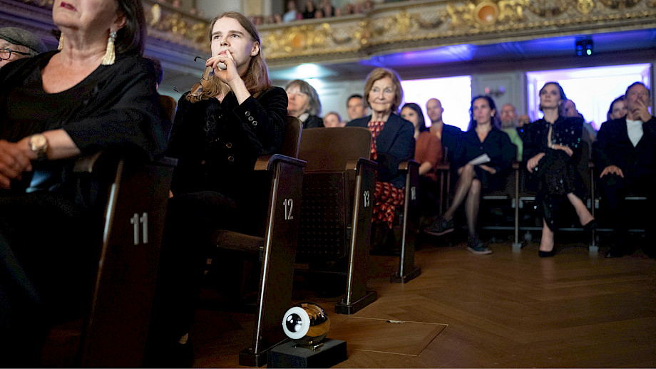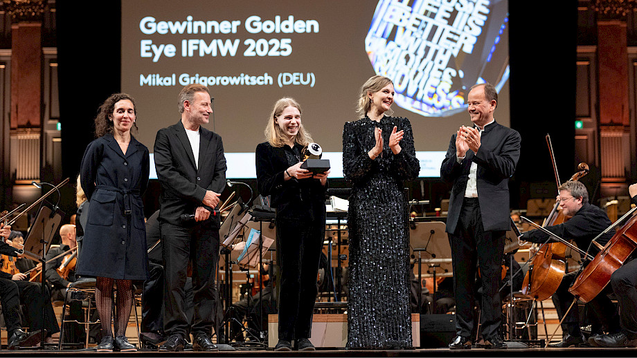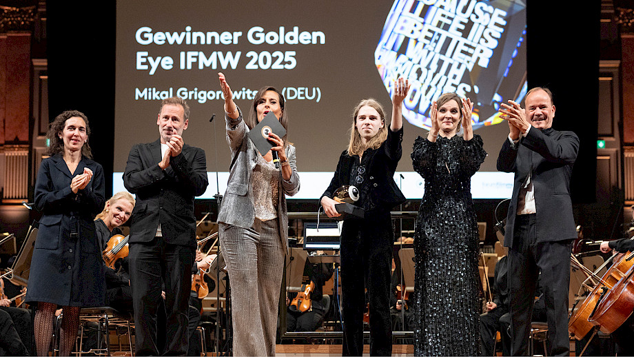 «Der Preis ist extrem schwer»: Das war Mikal Grigorowitschs erste Reaktion auf das «Golden Eye», das Jury-Präsidentin Hildur Guðnadóttir überreicht hatte. Grigorowitsch – Jahrgang 2005, Musikwissenschafts-Student in Berlin und Filmmusik-Aficionado seit der Begegnung mit John Williams' Soundtrack für «Star Wars» – hat zum allerersten Mal an einem Wettbewerb teilgenommen und diesen gleich für sich entschieden.