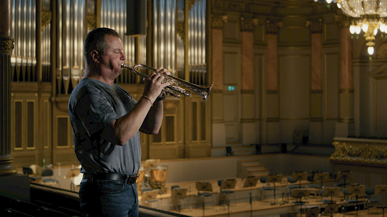Unser Solo-Trompeter Philippe Litzler spielt uns einen Ausschnitt aus Mahlers 5. Sinfonie vor.