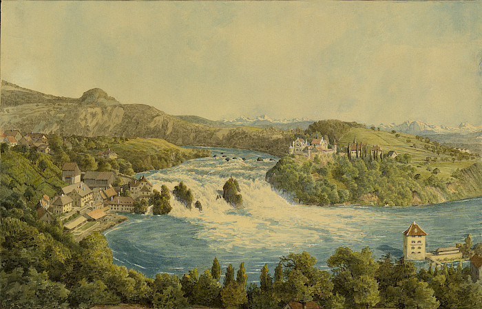 Der Rheinfall bei Schaffhausen. Aquarell, das Mendelssohn auf der Reise von 1847 malte.²