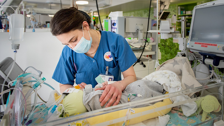 Seit 2018 arbeitet sie mit Kindern, die monatelang im Kinderspital bleiben müssen. Viele von ihnen sind Neugeborene, die mit einem Herzfehler, einer Zwerchfellhernie oder Darm-Problemen zur Welt gekommen sind. Sie haben einen stressigen Start ins Leben, vor allem, wenn sie auf der Intensivstation liegen: Ihre Betten stehen in offenen Kojen, rundherum piepsen Monitore, sie hören Schritte, Stimmen, Türgeklapper. Und immer wieder müssen sie Untersuchungen und Eingriffe über sich ergehen lassen, die ihnen niemand erklären kann.