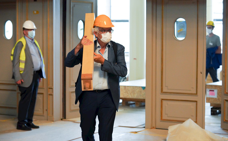 Music Director Paavo Järvi verfolgt den Transport der Orgelpfeifen in die Tonhalle am See (Foto: Hans Syz)