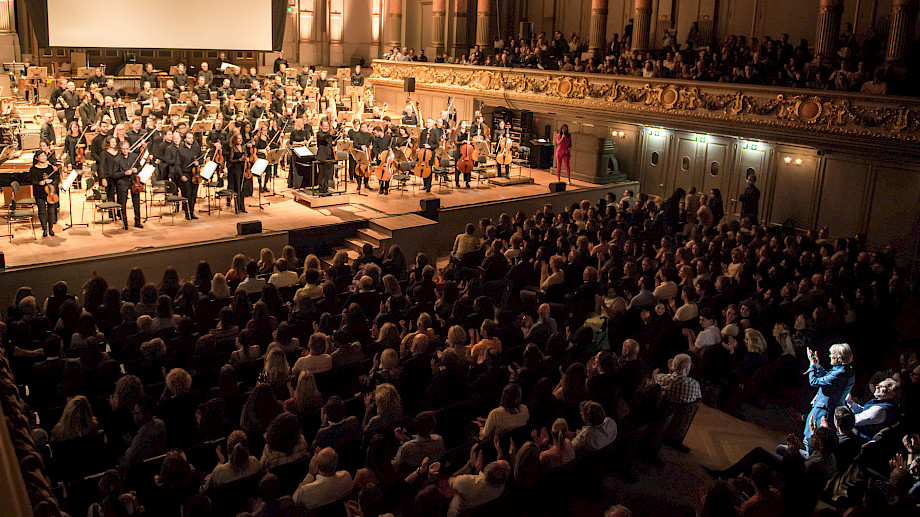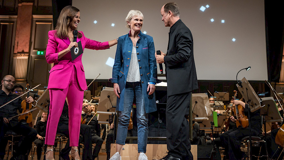 Full house! In der ausgebuchten Grossen Tonhalle feierten wir mit einem kunterbunten Publikum die erste tonhalleLATE der Saison und zugleich den 20. Geburtstag des Formats. Sandra Studer führte uns durch die Filmmusik von Rachel Portman, die uns die Ehre gab. Dirigent Frank Strobel berichtete von unerwarteten Anrufen von Horrorfilmmusikkomponist Christopher Young und worauf wir uns mit «Nosferatu» im Februar freuen können.
