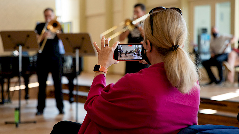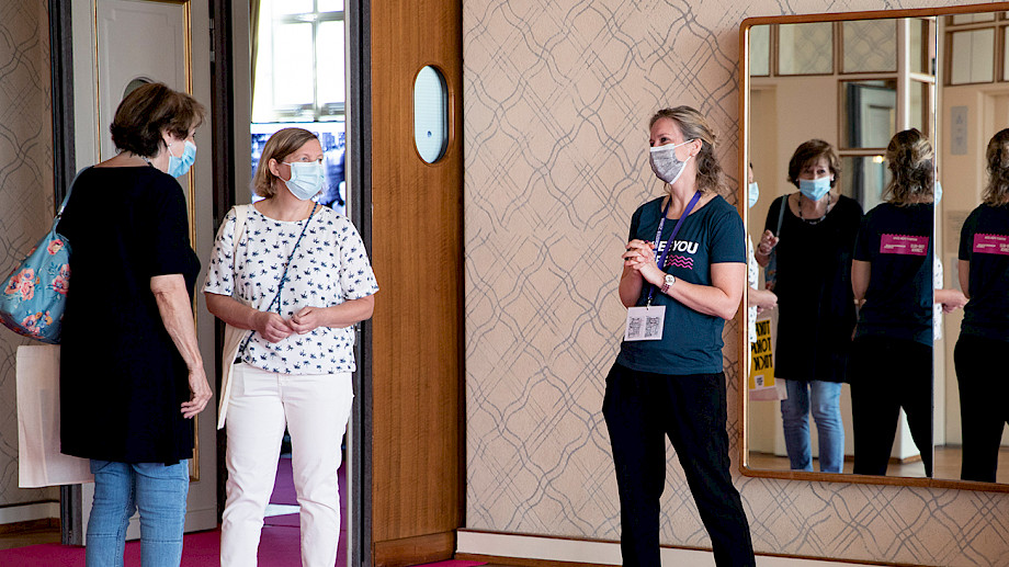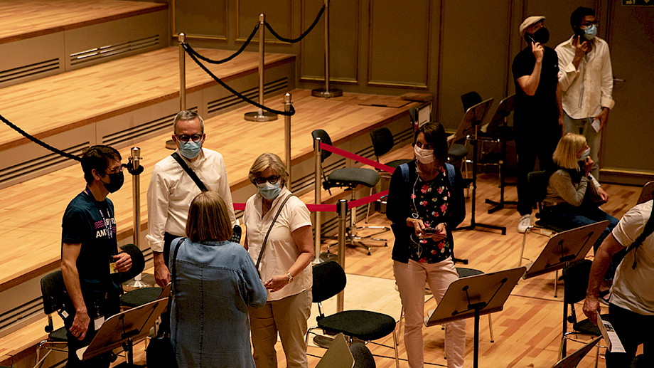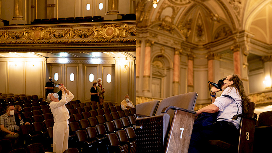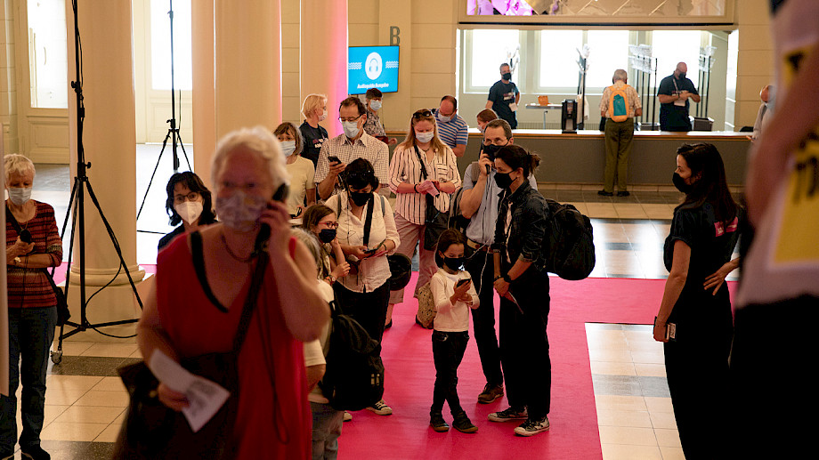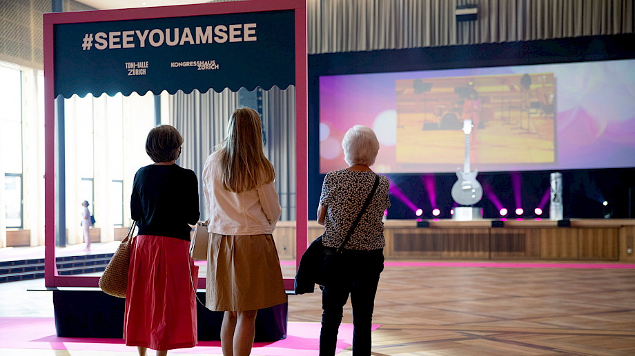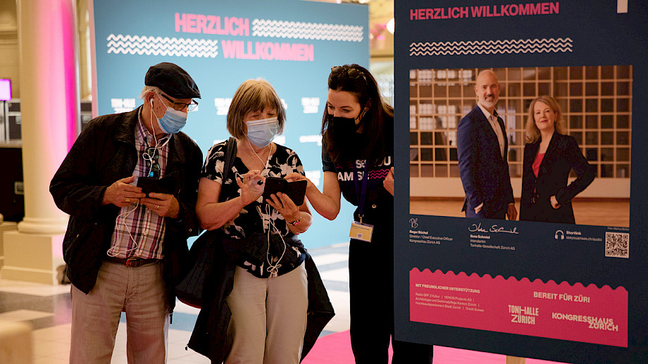 In einem Rundgang entlang des pinken Teppichs durften die Besucher*innen coronakonform selbstständig die Räumlichkeiten von Tonhalle und Kongresshaus Zürich erkunden. Mittels QR-Code aufrufbare Audioguides führten die Besucher*innen zurück in die Entstehungszeit der Tonhalle, gaben Einblick in die aufwändigen Renovationsarbeiten der letzten vier Jahre und lieferten spannende Hintergrundinformationen zu den Betrieben von Kongresshaus und Tonhalle Zürich.