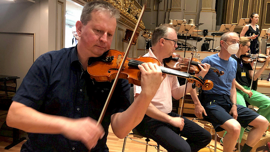 Auch Thilo Herrmannsdörfer, Director bei der Swiss Re, ist mit seiner Geige dabei: Er schätzt die Gelegenheit, vier Tage lang konzentriert und gut vorbereitet mit top Laienmusiker*innen zu musizieren und auf das eine gemeinsame Ziel hinzuarbeiten: Das Konzerterlebnis.