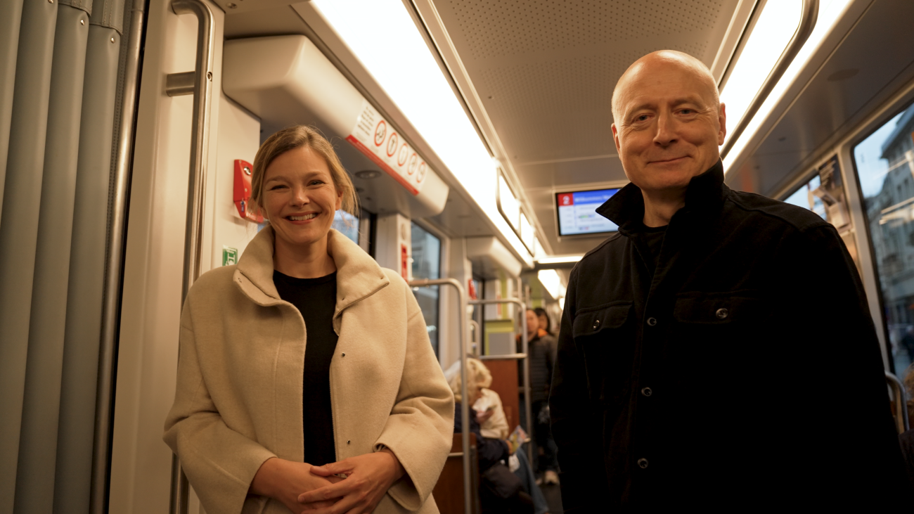 In der elften Episode von «Tram for Two» fahren Music Director Paavo Järvi und die Violinistin Janine Jansen im Tram Nr. 2 durch Zürich.